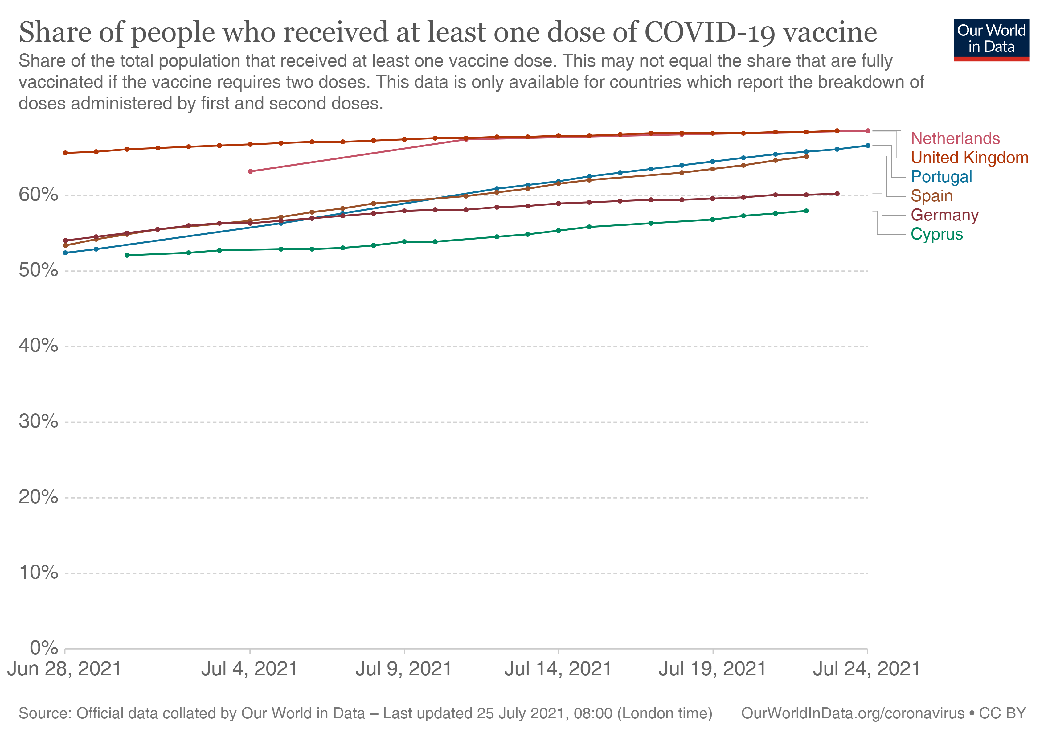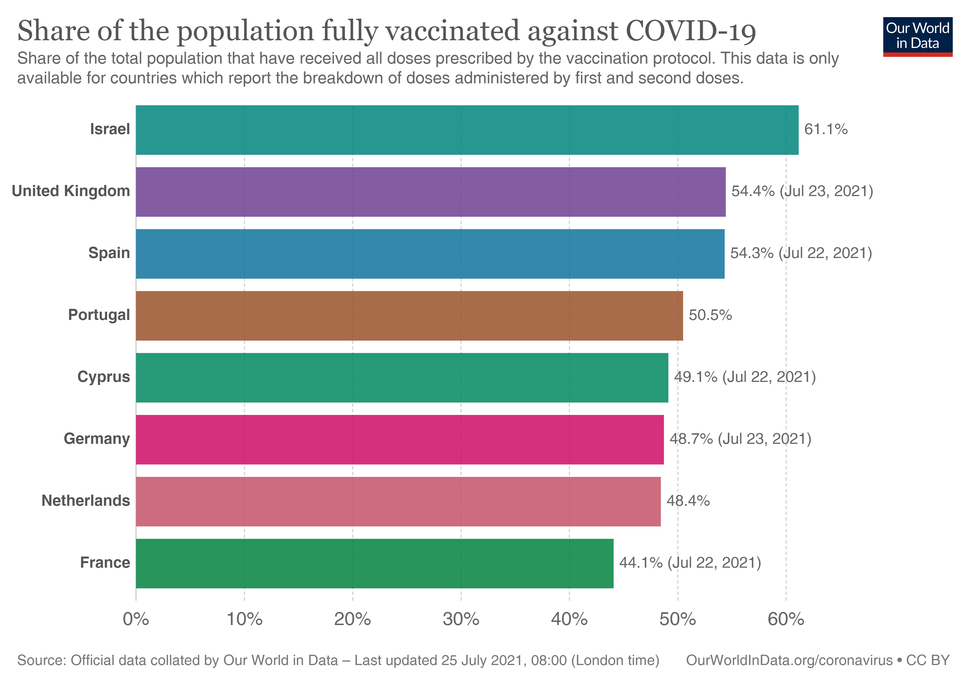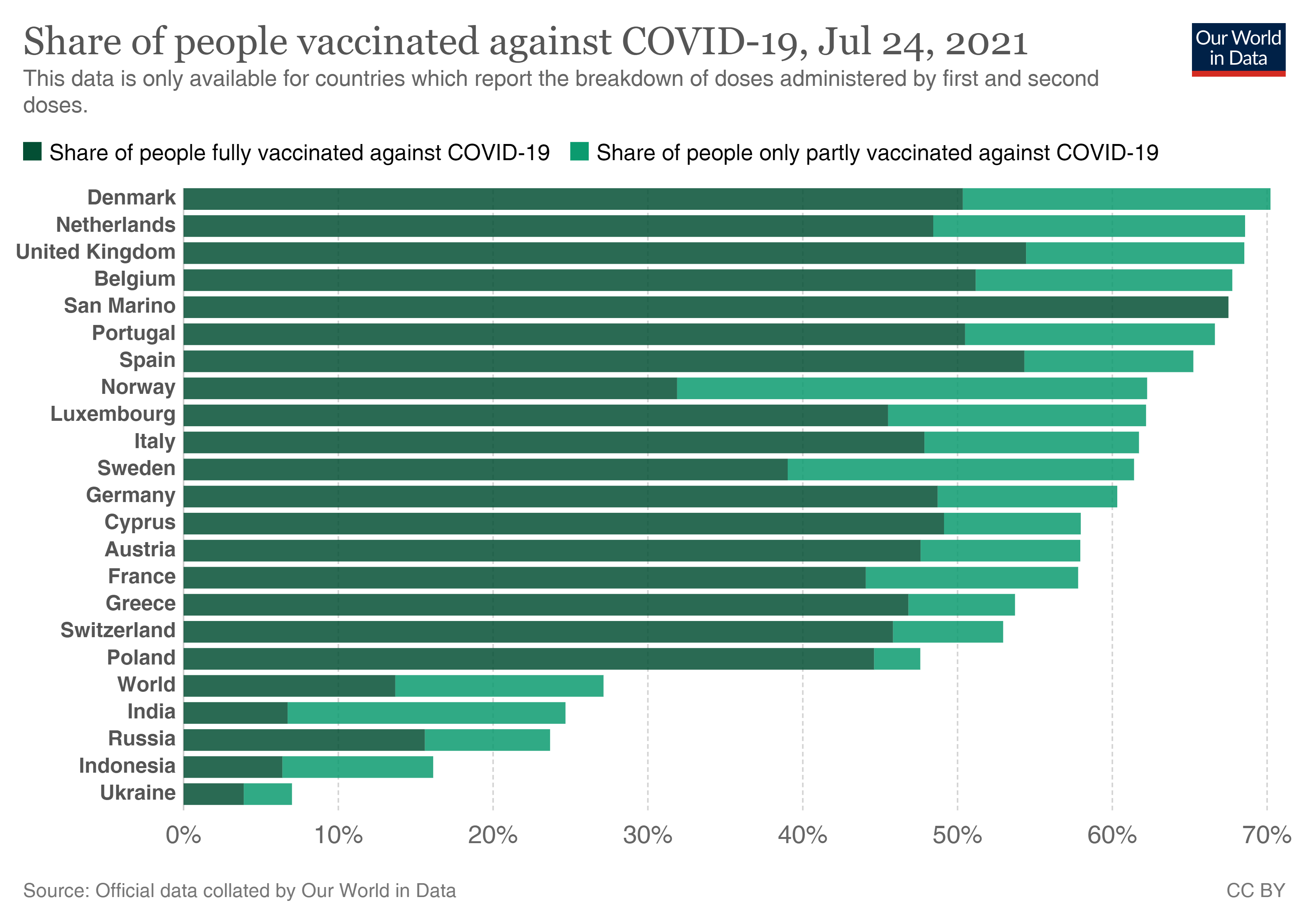 Außerdem kann man den folgenden Daten entnehmen, daß die Delta-Variante bisher in jenen Ländern am stärksten grassierte, die die den höchsten Impffortschritt aufweisen, nämlich England, Spanien, Portugal, mit je über 50% vollständig Geimpften. Dem gegenüber liegt die Quote in Indien bei lediglich ca. 25% und die Infektionen mit der Delta-Variante sind in Indien bereits längst wieder am Abklingen. Den Anteil der „Delta-Variante“ kann man diesen Quellen entnehmen.